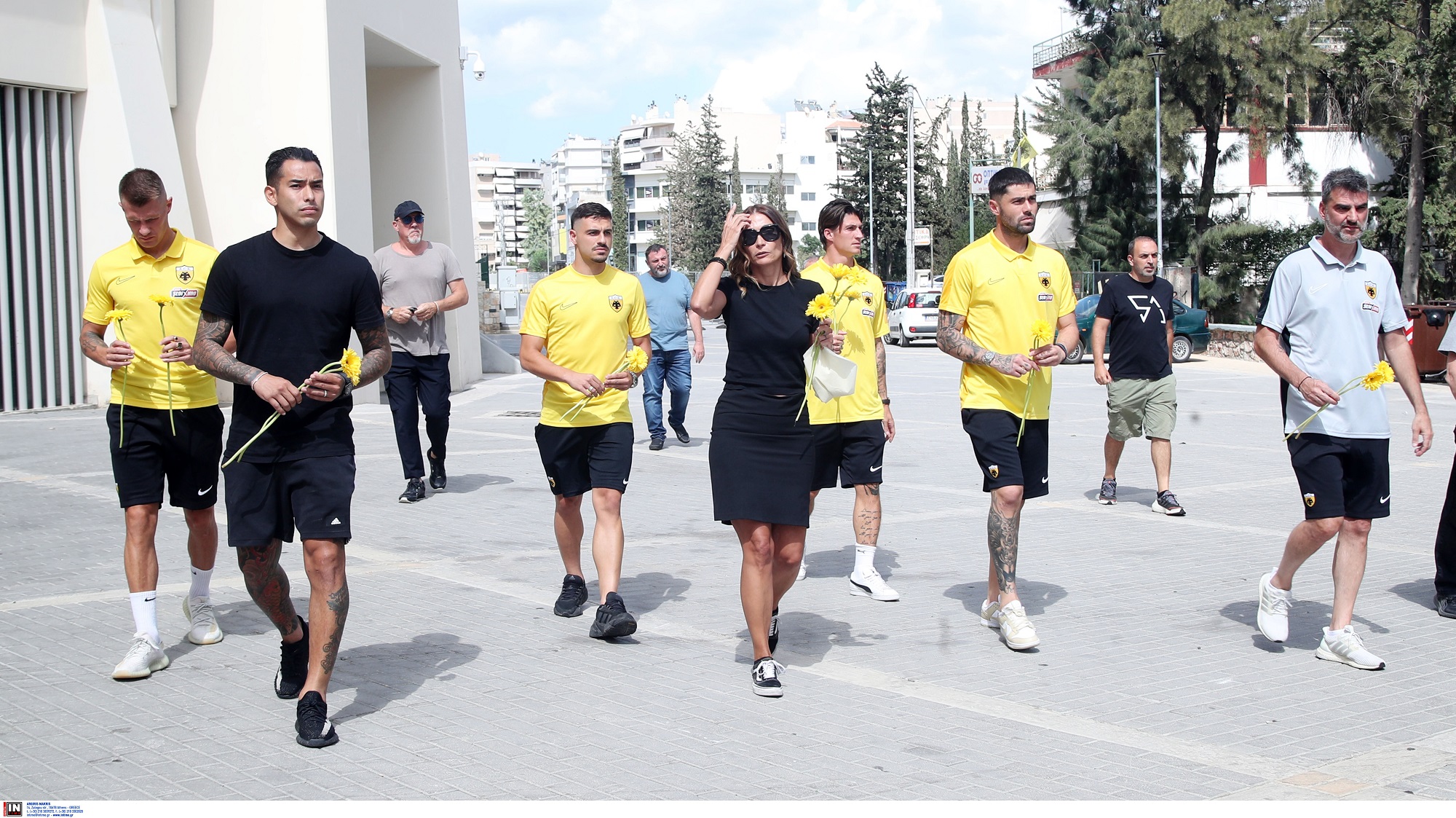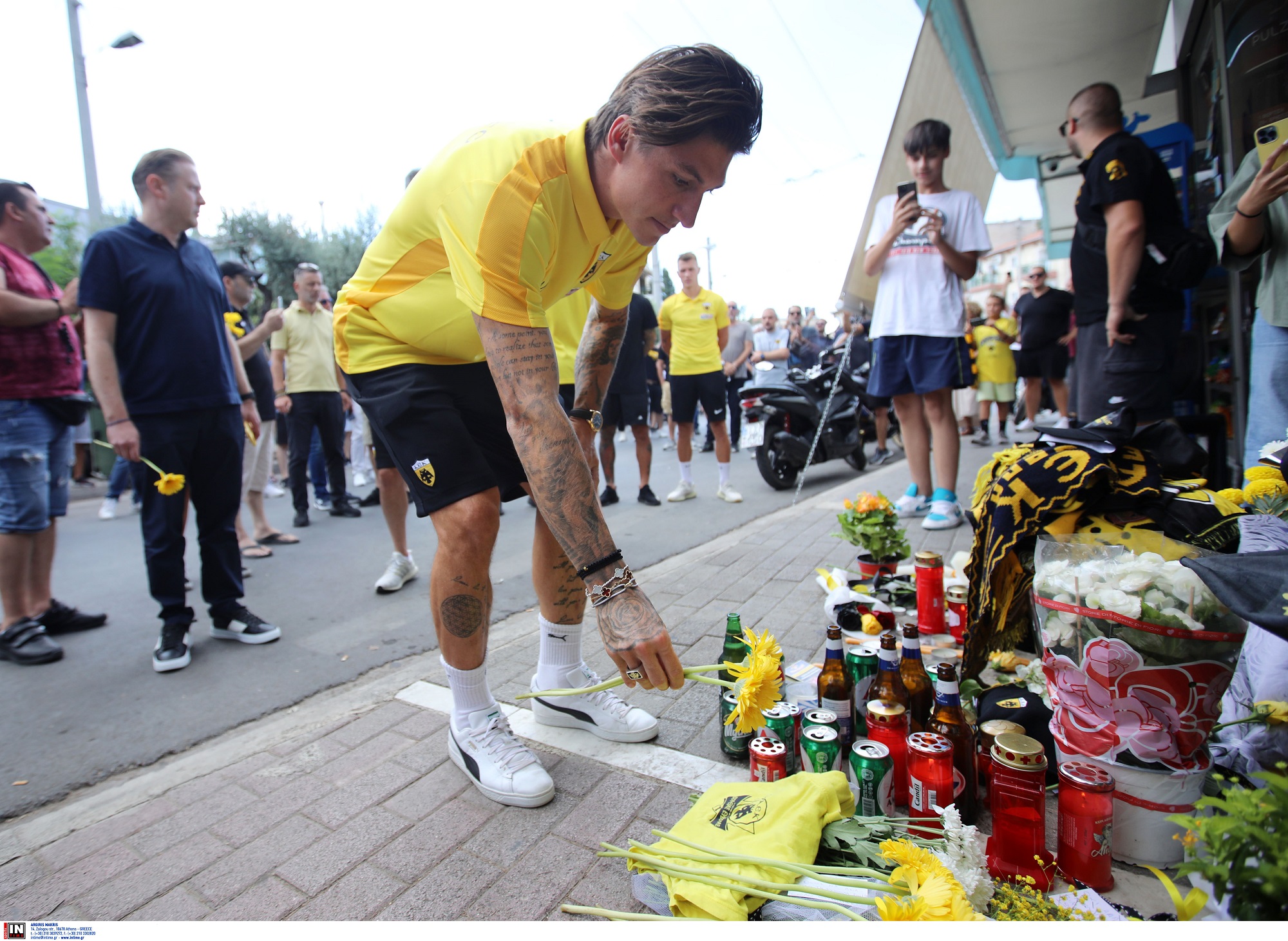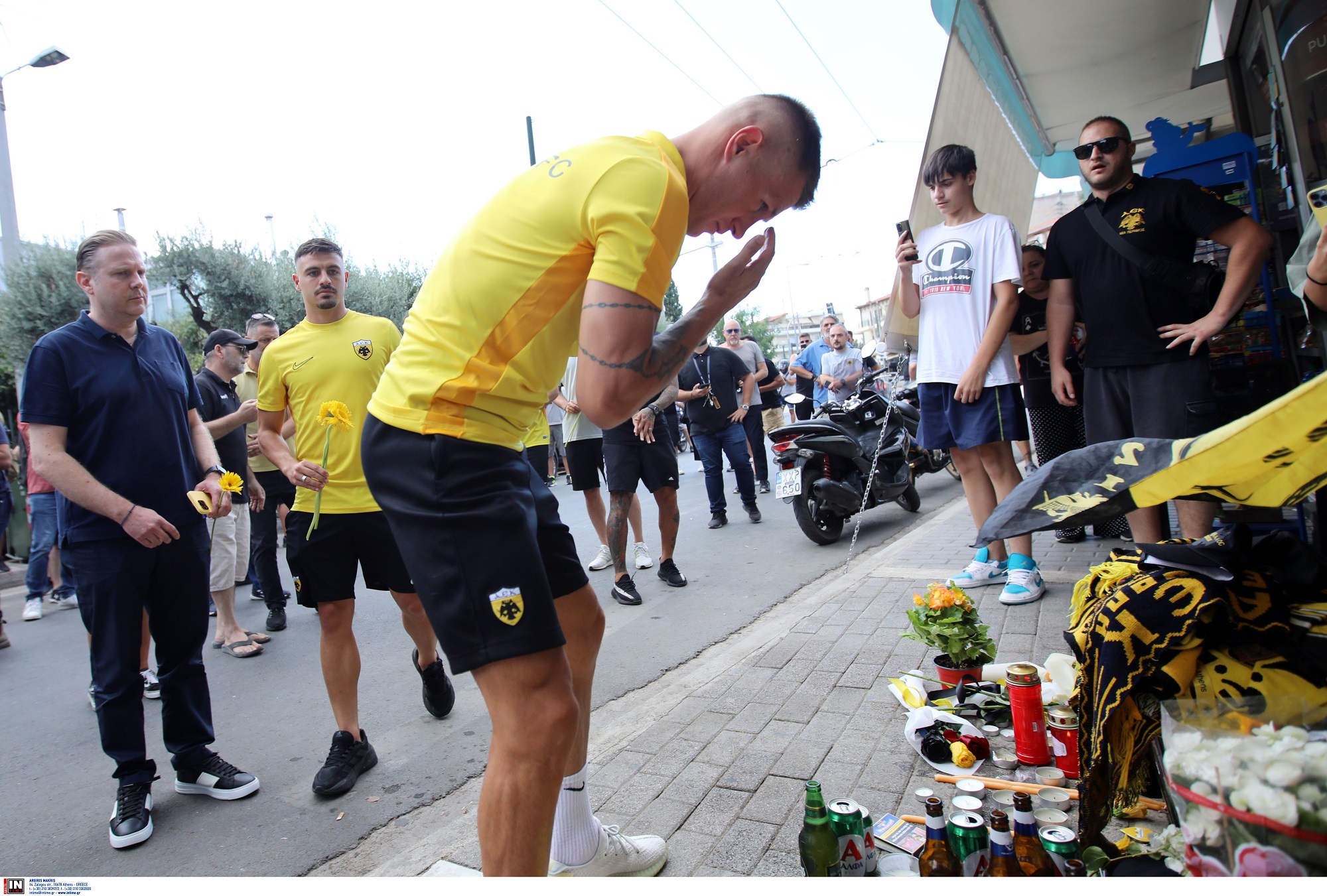 Στο σημείο της δολοφονίας του 29χρονου Μιχάλη βρέθηκαν το μεσημέρι ποδοσφαιριστές της ΑΕΚ αλλά και μέλη της διοίκησης της ομάδας για να αποτίσουν φόρο τιμής.